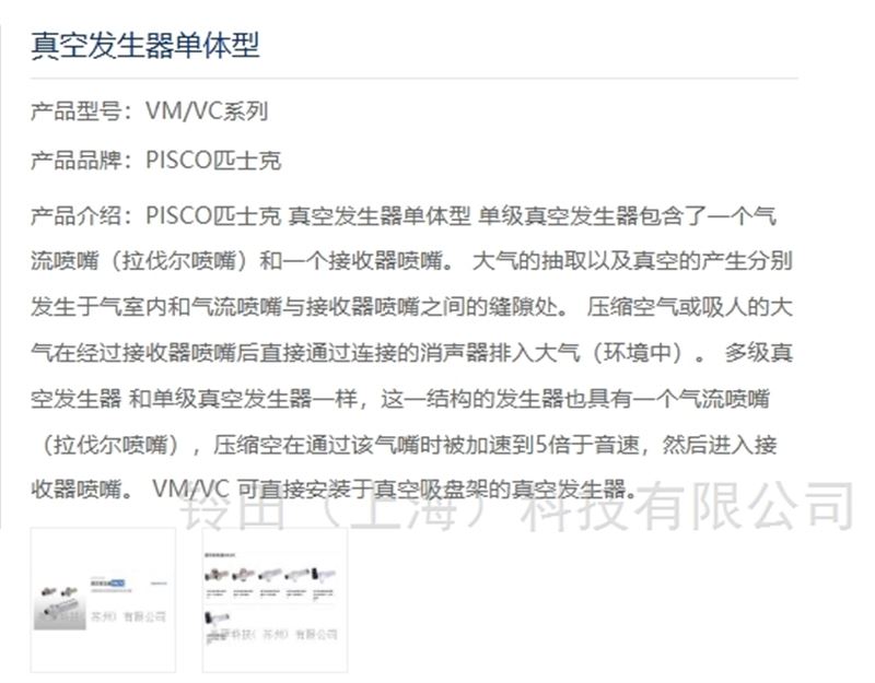 PISCO匹士克真空发生器单体型